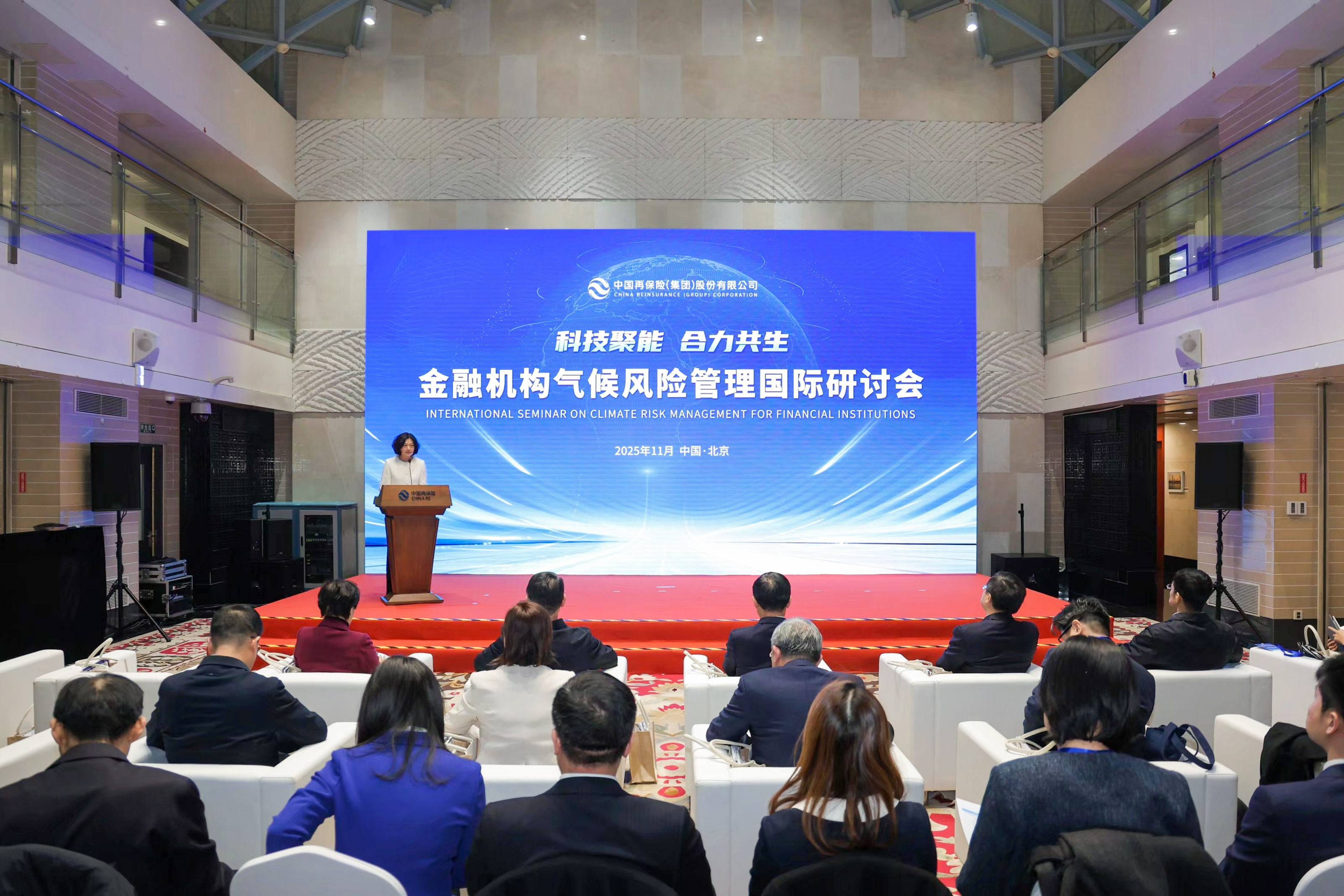 险大厦举行。研讨会采取线上线下相结合的方式,来自财政部、中国人民银行、国家金融监督管理总局等相关部委、科研院所以及金融企业的各界嘉宾齐聚一堂,共同探讨金融机构气候风险管理,为构建具有韧性和可持续性的金融体系贡献智慧与力量。